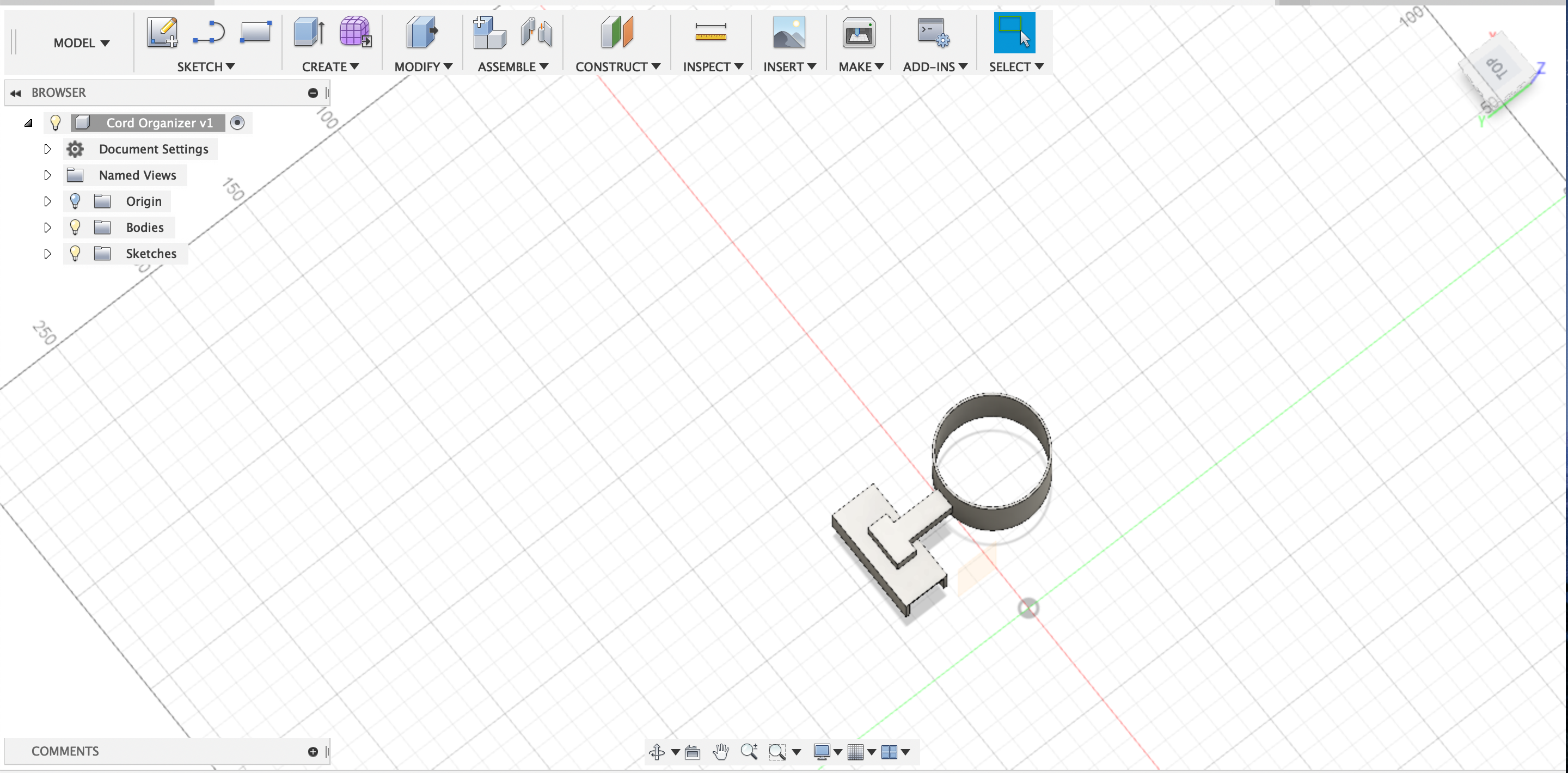 For the second part, it was a little bit more challenging. I had to get the measures just right to fit my current desk and cords. My desk was almost exactly 1 inch in height (for the lip part of it) I believe i did a good job at doing just that. My design should fit my desk like a glove. The wire actually goes through the back of the design and comes out on the top. Then, when the wire gets closer to the desk, the user can then wrap up the slack (or some of it) in its tiny little pillar to make sure the cord stays in place.